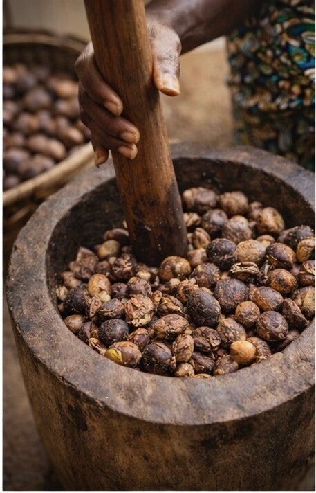 Onze shea butter begint bij de shea noot, met zorg geoogst en traditioneel verwerkt. Al generaties lang wordt deze boter gebruikt om de huid te voeden, beschermen en herstellen. Puur, eerlijk en krachtig.